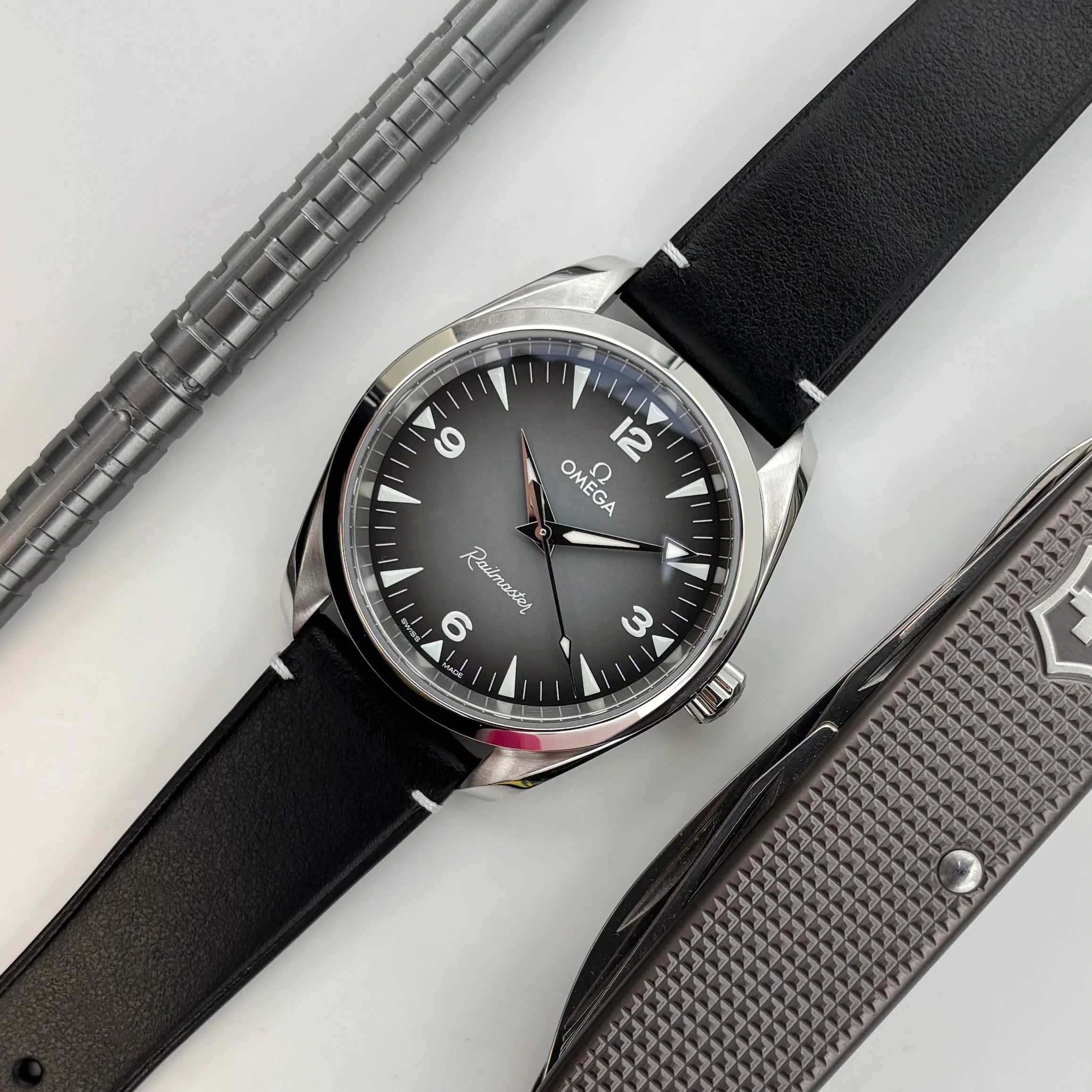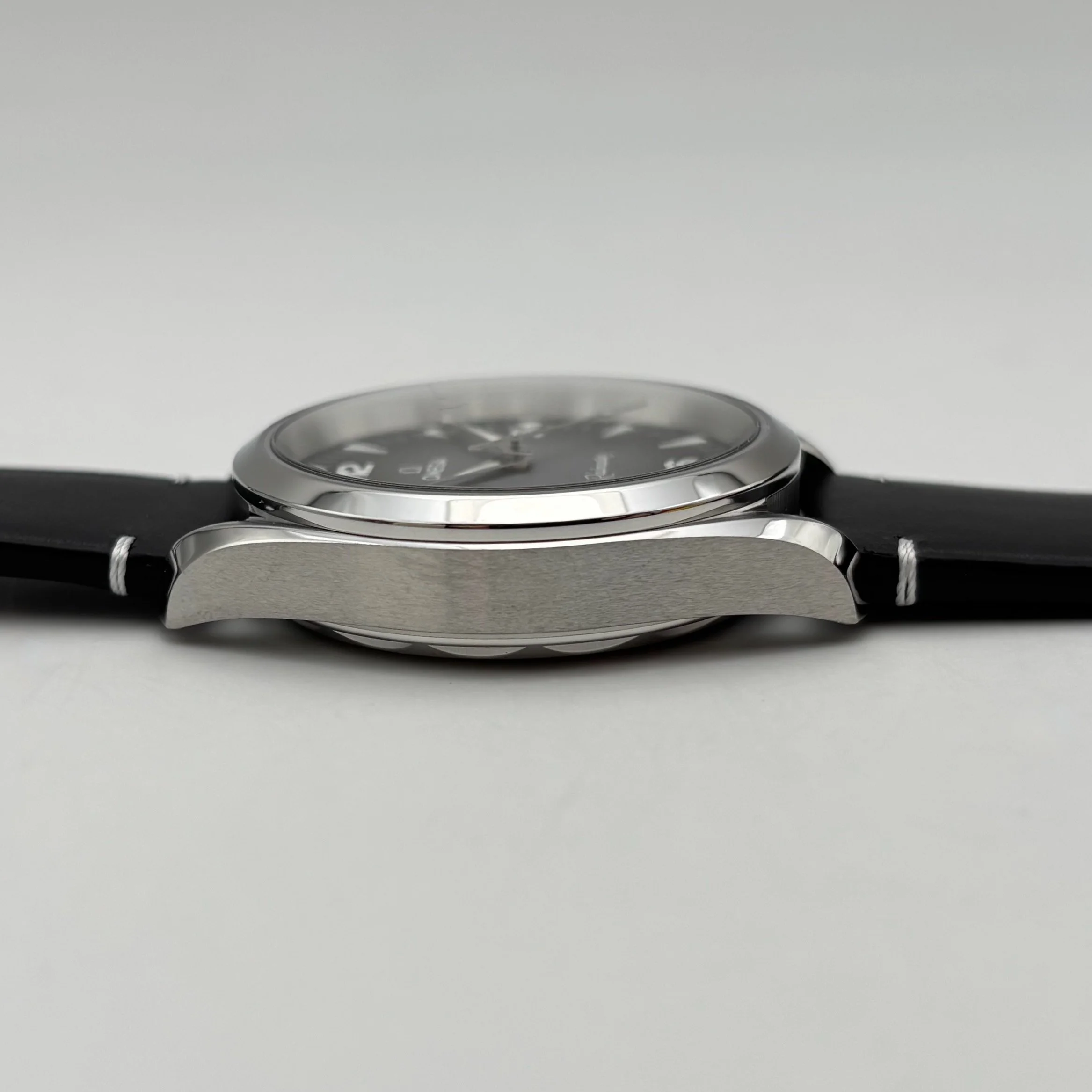 Originally introduced in 1957 for railway workers and professionals exposed to strong magnetic fields, the OMEGA Railmaster has always combined robust engineering with classic design. This modern reinterpretation stays true to its roots while adding contemporary upgrades in both aesthetics and performance. The 38 mm symmetrical case is beautifully brushed and polished, paired with a black leather strap for a timeless look. Its grey dial features a subtle black gradient and bold white Super-LumiNova numerals and hour markers, maintaining the Railmaster’s signature legibility. Inside, the watch houses the OMEGA Co-Axial Master Chronometer Calibre 8806 — a highly precise movement resistant to magnetic fields up to 15,000 gauss. The movement is visible through the sapphire crystal caseback, underscoring the blend of heritage and modern innovation. This watch is unworn and will ship with the outer box, Omega display box, Warranty Card, Pictograms Card, serialized hang tag and The Essential Guide.