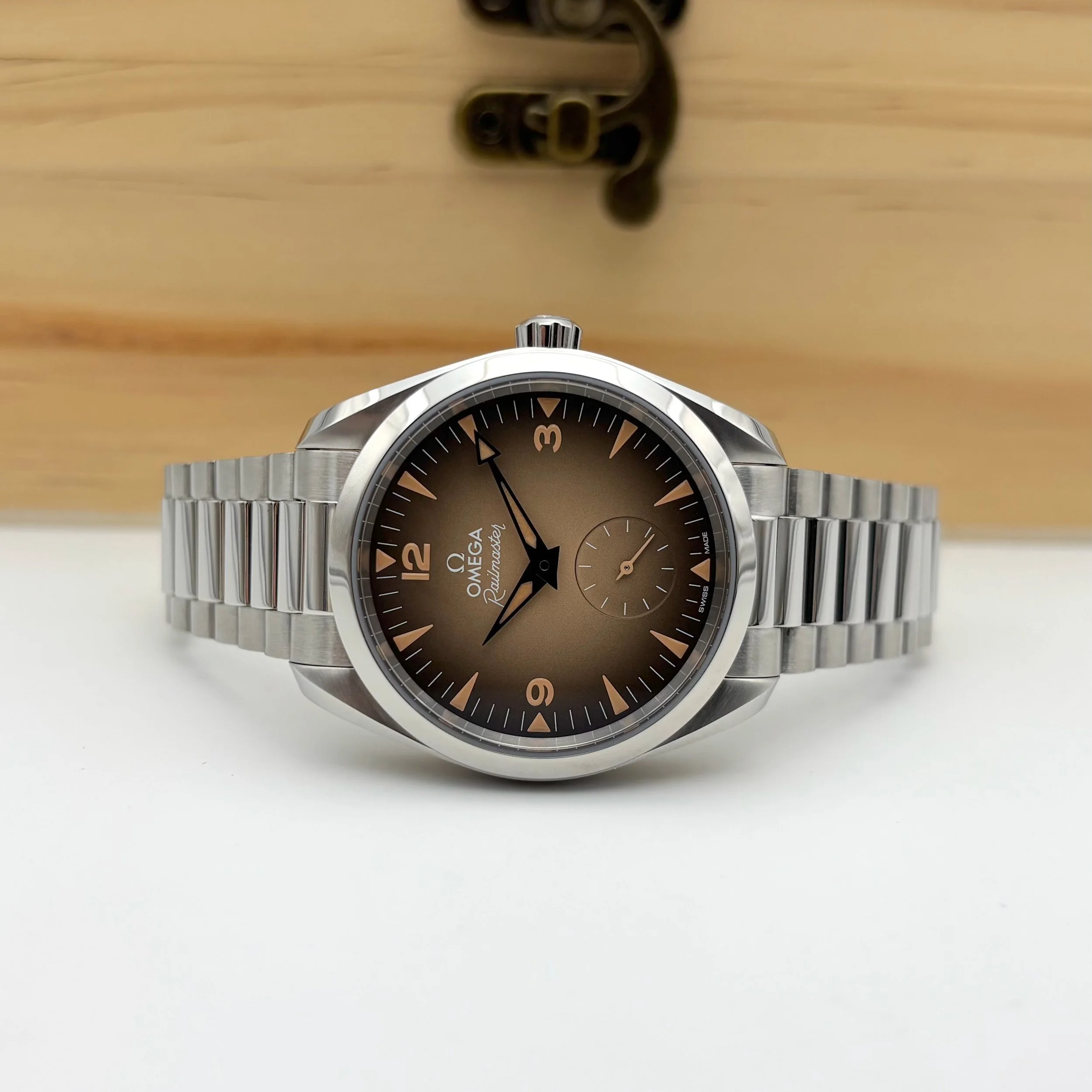 The Railmaster reference 235.10.38.20.13.001 has a new beige with a black gradient dial and a brushed and polished 38mm case and links. The bracelet features a foldover butterfly clasp with a comfort setting, seamlessly incorporating form and function into this timepiece. With up to 15,000 gauss of anti-magnetism, Omega’s Co-Axial Master Chronometer Calibre 8804, and a domed sapphire crystal and sapphire display case back, the Railmaster is more than a throwback - it is a testament to Omega’s own legacy.