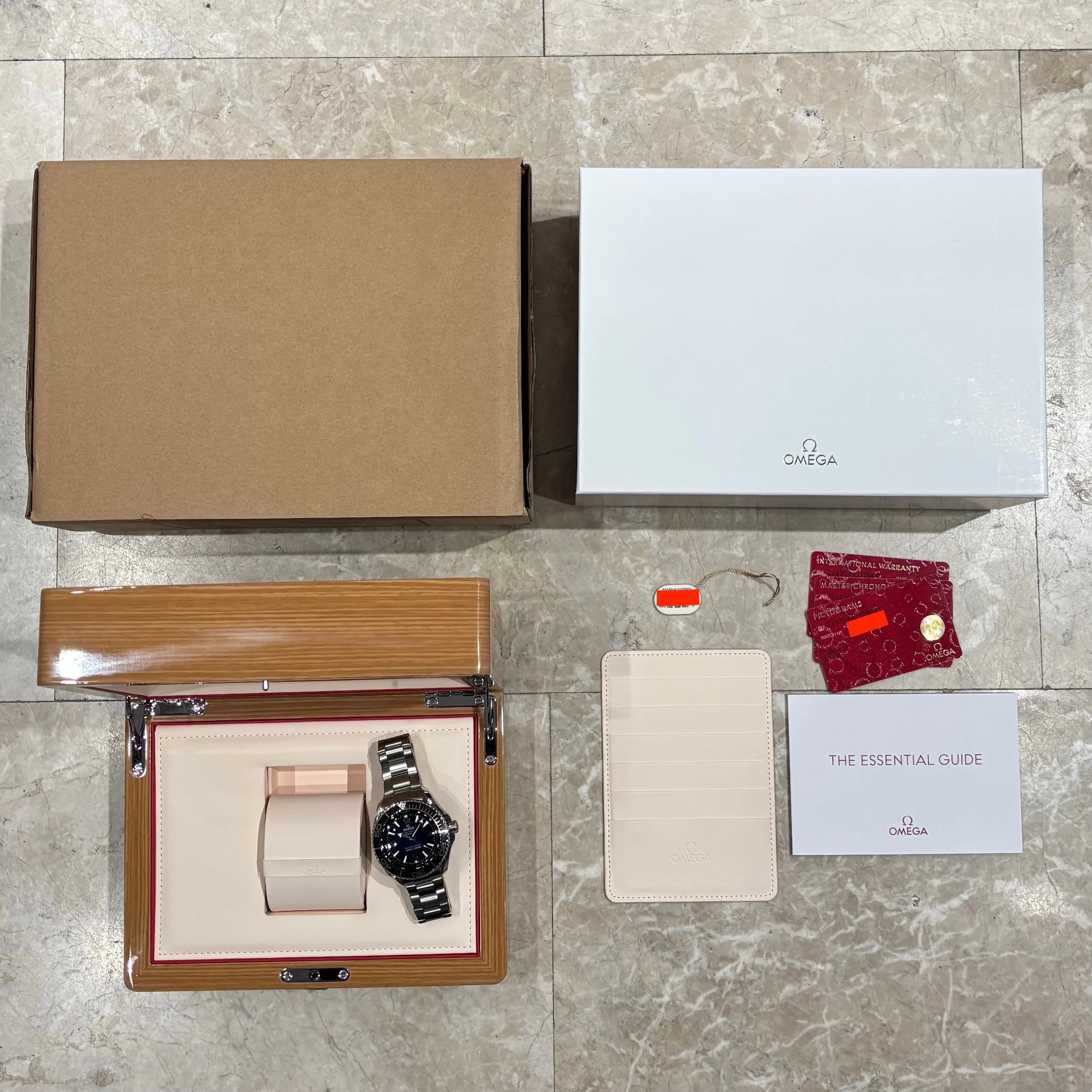 The watch is fitted with an O-MEGASTEEL bracelet featuring OMEGA’s patented extendable foldover clasp with fine adjustment and an extra diver extension. On the Grade 5 titanium caseback, a laser-engraved Sonar emblem surrounds the iconic OMEGA Seahorse medallion — a nod to its deep-sea legacy. Powering the watch is the OMEGA Co-Axial Master Chronometer Calibre 8912, delivering exceptional precision and magnetic resistance. The watch will ship with the outer box, Omega display box, Warranty Card, Pictograms Card, Master Chronometer Card, serialized hang tag and The Essential Guide.