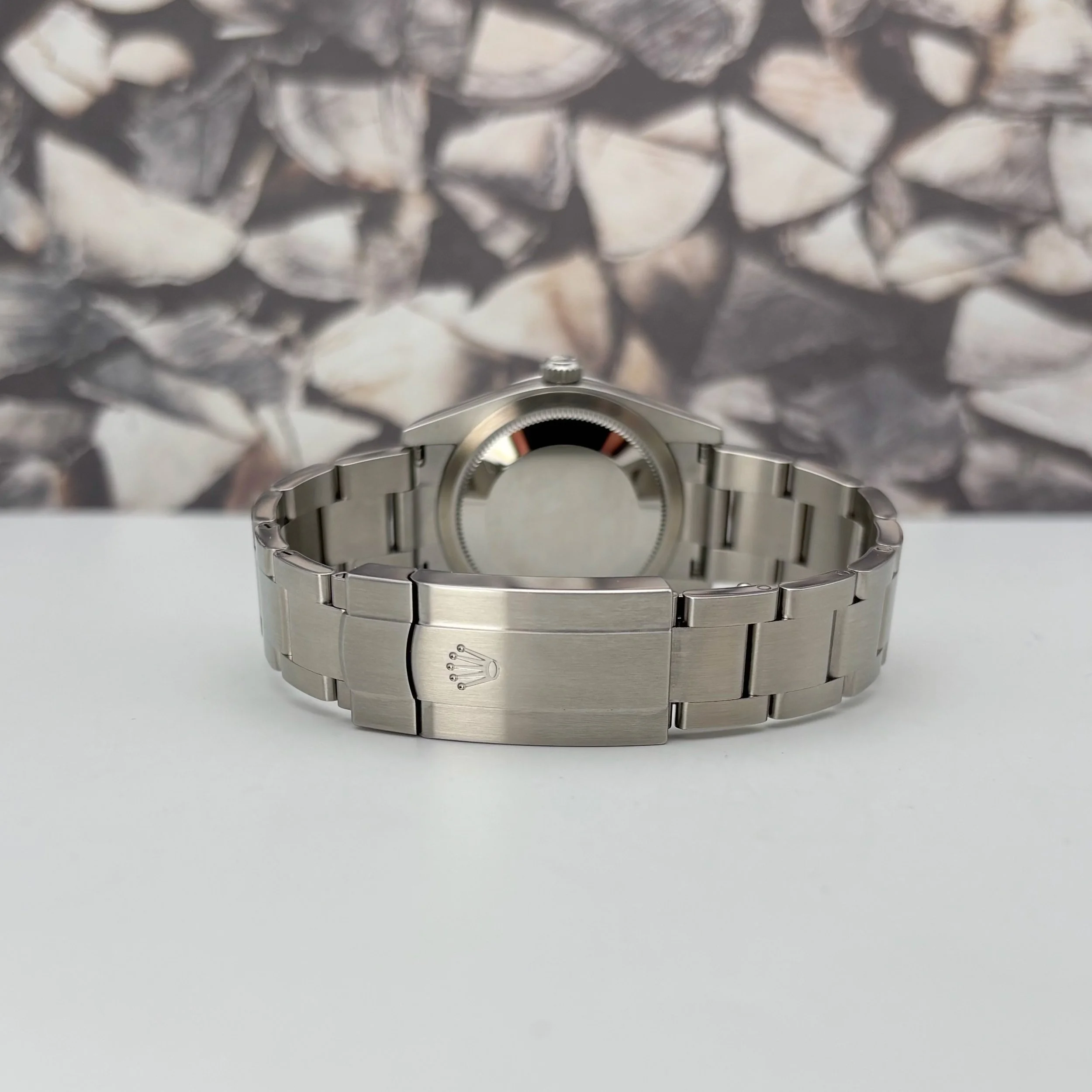We are pleased to offer this unworn 2025 Rolex Oyster Perpetual 34, with reference 124200, featuring a beige dial— a new dial variant released by Rolex in 2025. This watch has a 34mm Oystersteel case and is powered by the in-house Rolex Calibre 2232 automatic movement, offering approximately 55 hours of power reserve. Movement functions include center hour, minute, and seconds hands, along with stop-seconds for precise time setting. Attached to the case is a Rolex Oyster bracelet with full links and a folding Oysterclasp buckle for a secure and comfortable fit. The watch will ship with the outer box, green inner display box, green chronometer certification hang tag, white serialized hang tag, leather card wallet, Worldwide Service Warranty Booklet, Oyster Perpetual booklet, and Rolex International Guarantee Card dated in August 2025.